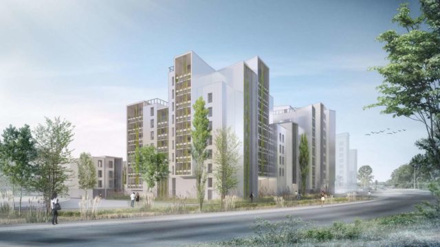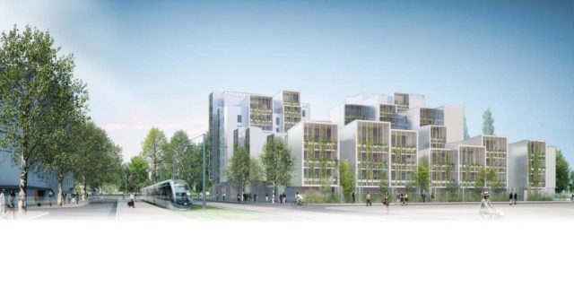 Construction de 34 logements en R+5 "Résidence du Lac", aménagements extérieurs, parkings aériens à Bordeaux.